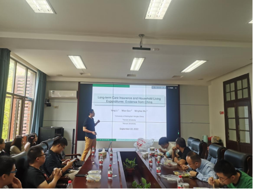 9月22日我院在红楼2号楼226学术报告厅成功召开第十二期午餐研讨会。此次研讨会由保险精算系助理教授郭淼老师做论文分享,共计有三十余名师生参加此次午餐研讨会。