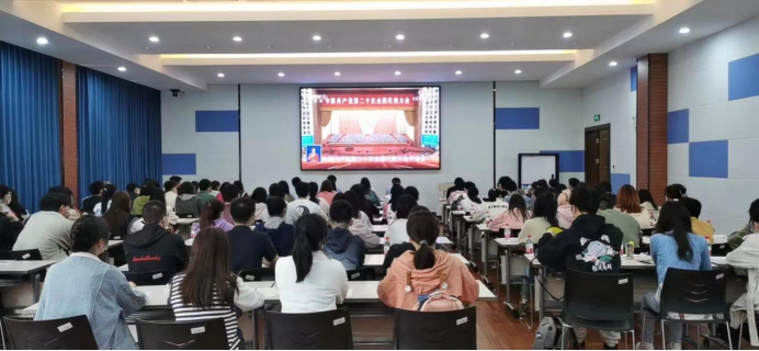 10月16日上午10时,中国共产党第二十次全国代表大会在人民大会堂开幕。日韩av 师生于财院校区学院报告厅收听观看大会实况转播,认真聆听习近平总书记所作报告。