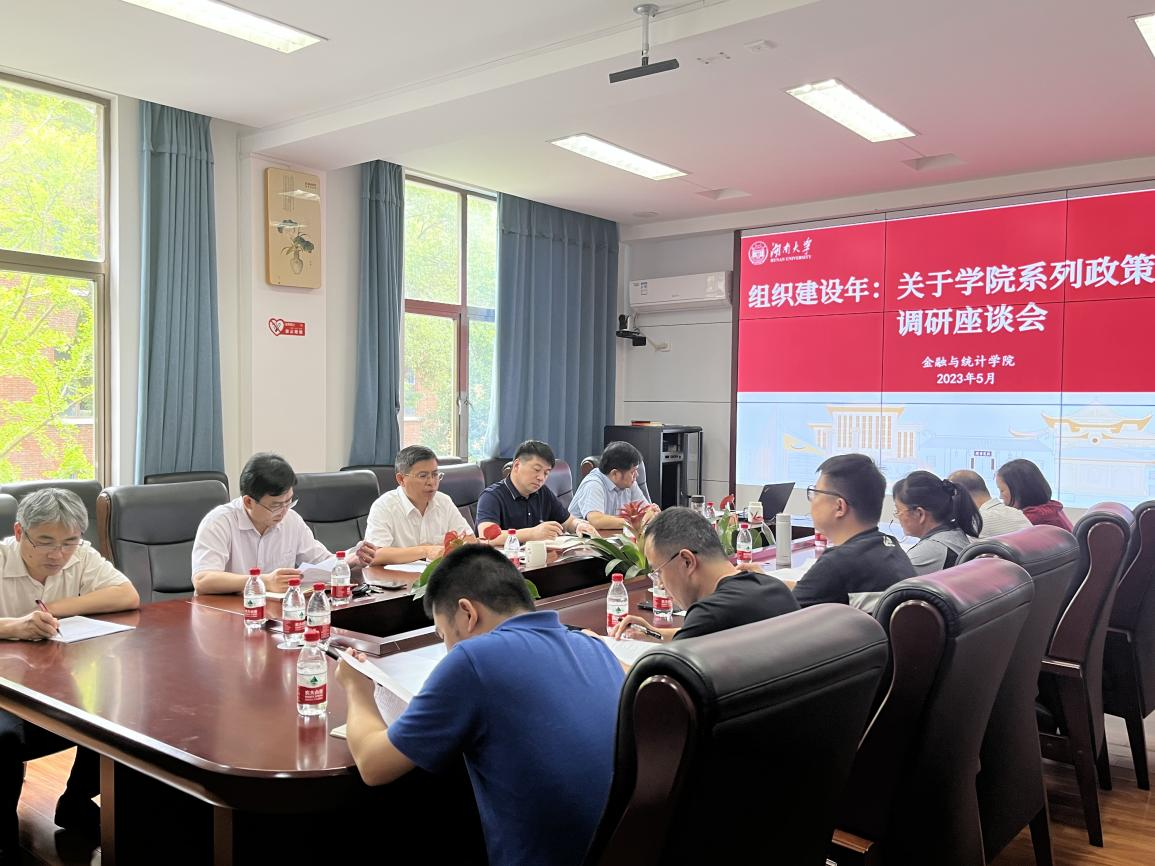 座谈会上,院长王修华从三个方面说明了本次调研座谈会的重要性。他指出,政策制度作为“指挥棒”和“风向标”,在运行了一个周期后需要进行适时调整优化,才能更好的发挥其导向和激励作用,适应新要求。他表示,从学科发展而言,目前学院已经进入了一流学科建设的新发展阶段,新发展阶段对对人才培养、师资建设、科学研究等都提出了更高的要求。从国家需求来看,目前进入中国式现代化的新发展格局,新发展格局对中国经济学、金融学自主知识体系建设提出了新要求,学院要紧跟学校的战略部署和发展方向,聚焦高水平研究,谋划高质量发展路径,力争在中国金融学自主知识体系构建中发挥应有的力量。