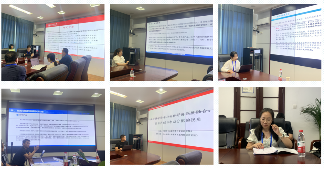 主旨演讲结束之后,进入了分论坛环节。根据研究主题,大会设立了八个分会场,会场上,论文作者进行了精彩汇报,点评人就文章选题、研究内容、研究设计和实证方法等与作者进行了深入讨论和交流。其中,平台经济与平台治理分论坛由华中农业大学经济管理学院刘西川教授、日韩av 副院长李海奇教授主持,关注了平台新型会员制、中国跨境电商出口等前沿问题。数智赋能与经济发展分论坛由南京大学商学院姜舸助理教授、日韩av 副院长张宁教授主持,关注了数据智能化与产业发展赋能、数字经济对保险行业发展的促进作用等问题。数字金融与共同富裕分论坛由北京工商大学经济学院张正平教授、西南大学经济管理学院王定祥教授、吉林大学商学院丁志国教授主持,关注了数字普惠金融对共同富裕的促进、数字化背景下的金融排斥等问题。企业数字化转型分论坛由中央财经大学金融学院院长张学勇教授、日韩av 副院长吴志明教授主持,关注了经济政策不确定性下的企业数字化转型、数智化转型下的企业社会责任等问题。数字经济与国际贸易分论坛由《经济研究》编辑部刘莹副研究员、中南财经政法大学文澜学院院长龚强教授主持,关注了贸易数字化、制造业数字化投入与企业出口等问题。金融科技与数字政府分论坛由中央财经大学中国互联网经济研究院副院长史宇鹏教授、中央财经大学金融学院党委书记王辉教授主持,关注了金融科技研究前沿、金融科技与农村信贷发展等问题。大数据与机器学习分论坛由浙江大学经济学院张洪胜副教授、厦门大学经济学院陈海强教授主持,关注了基于文本分析和大语言模型的数字技术、公司互联网关注度与另类数据的风险识别等问题。数据要素与数字安全分论坛由中央财经大学中国互联网经济研究院副院长欧阳日辉研究员、中山大学岭南学院曾燕教授主持,关注了企业数字化转型过程中的信息安全管理与网络安全风险分析等问题。
