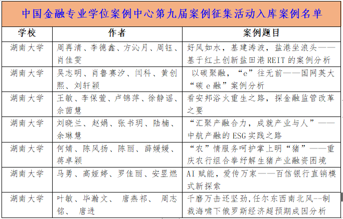 2023年9月4日,全国金融专业学位研究生教育指导委员会公布了中国金融专业学位案例中心第九届(2023年)案例征集活动结果,我院周再清、吴志明、王敏、刘晓兰、何婧、马勇和叶敏等7位老师及其团队成员完成的7项案例从1116篇参评案例中脱颖而出,被纳入中国金融专业学位案例中心。在本届金融案例征集活动中,我院入选的案例总数位居全国各培养单位第2名,创我院参赛以来的最好成绩。