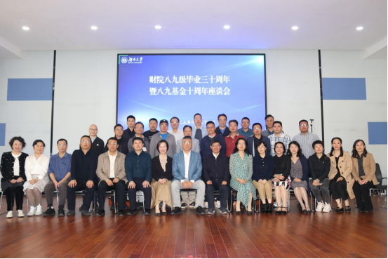 吴敏文向校方的精心安排表示感谢,讲述了八九基金十年来的发展历程和成果。他提到,在八九级毕业三十周年的关键节点,八九级校友要共同努力,将“财经教育奖励基金”进一步做大、做好,为学校的发展作出新的更大贡献。