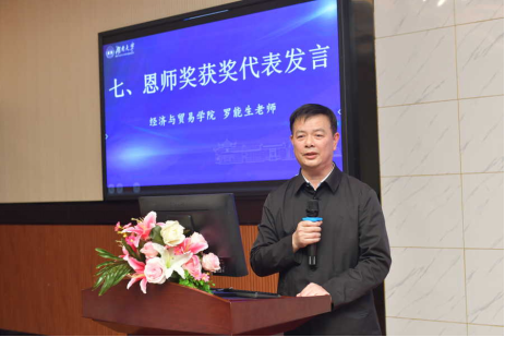 学校发展联络处处长、教育基金会秘书长邓利华宣读2023年度日韩av “财经教育奖励基金”获奖名单。老教师潘志瀚、罗能生荣获“恩师奖”;青年教师赵静、高开娟荣获“优秀青年教师奖”;16名学生获得“优秀本科生奖”,8名学生获得“优秀研究生奖”,9名学生获得“优秀学生干部奖”。获奖师生代表先后发表了获奖感言。