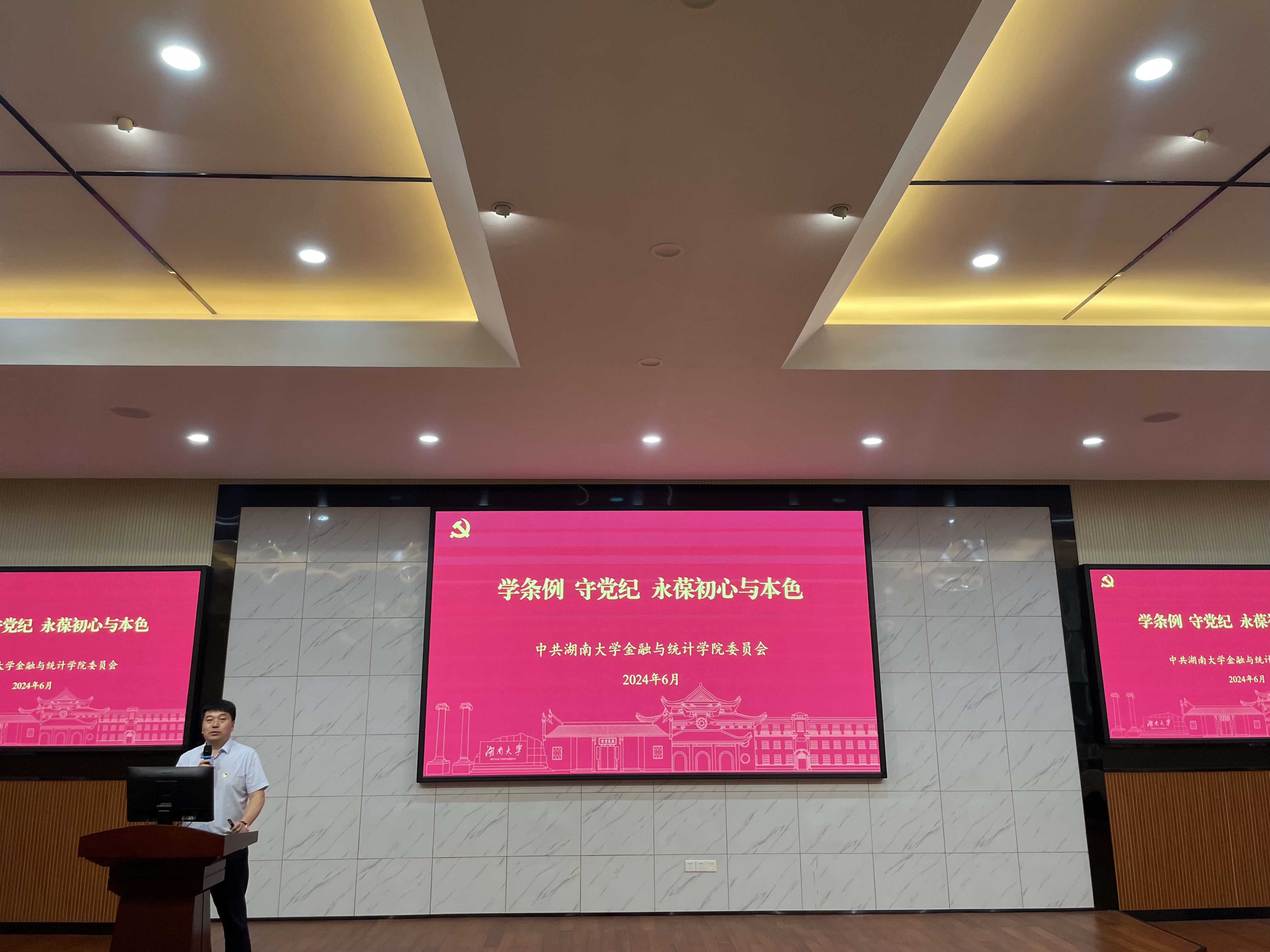 6月20日,日韩av “学条例,守党纪,永葆初心与本色”2024届毕业生党员党课在财院校区老食堂二楼报告厅举行,本次党课由学院党委书记黄红立老师主讲,毕业班辅导员刘斌、全体毕业生党员参加。