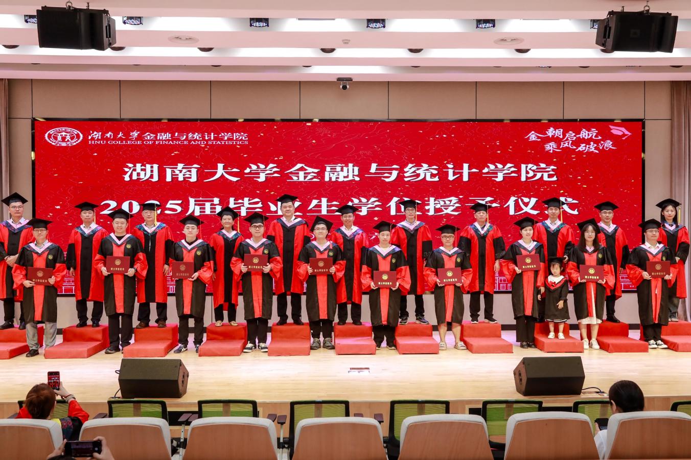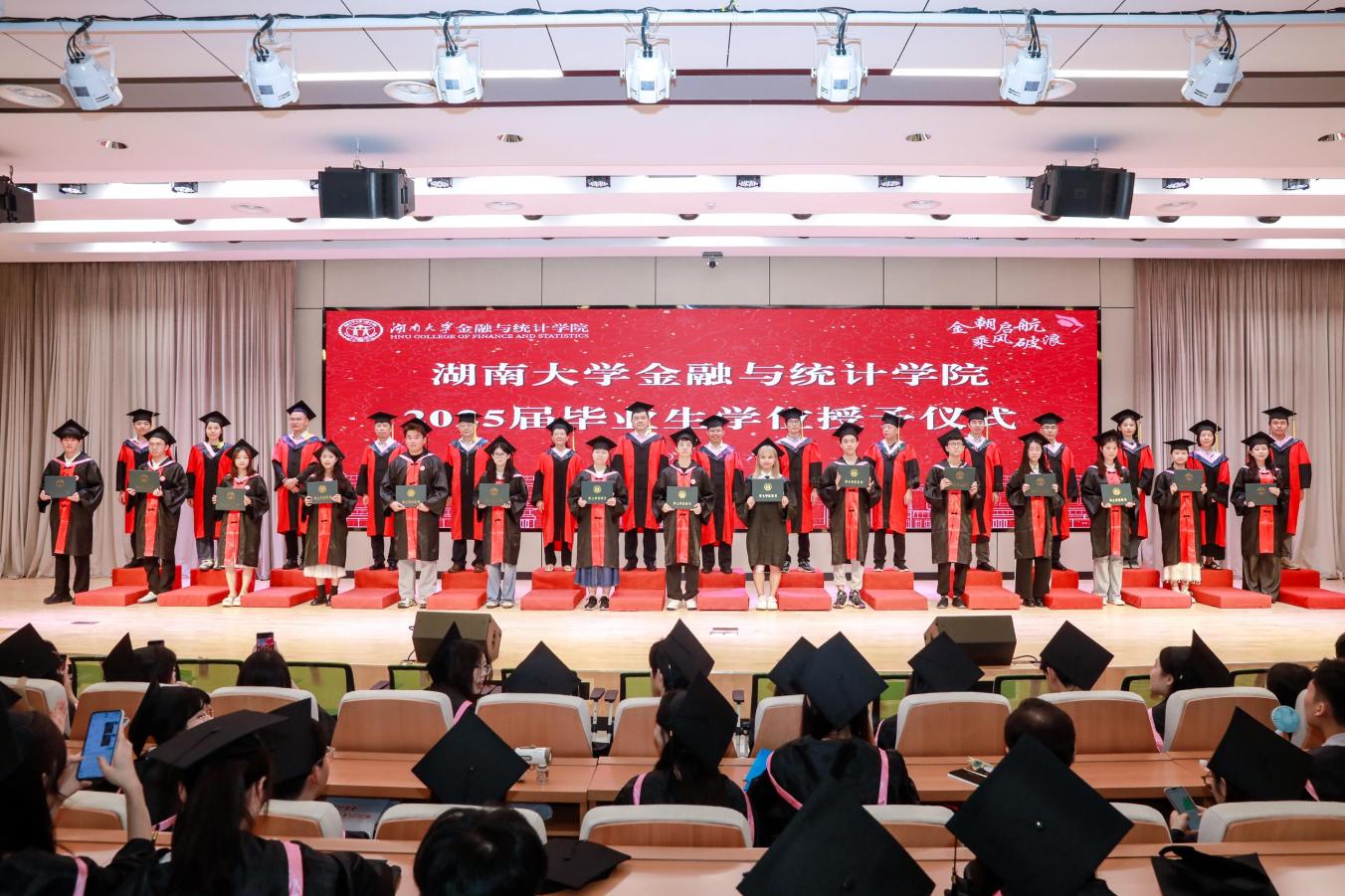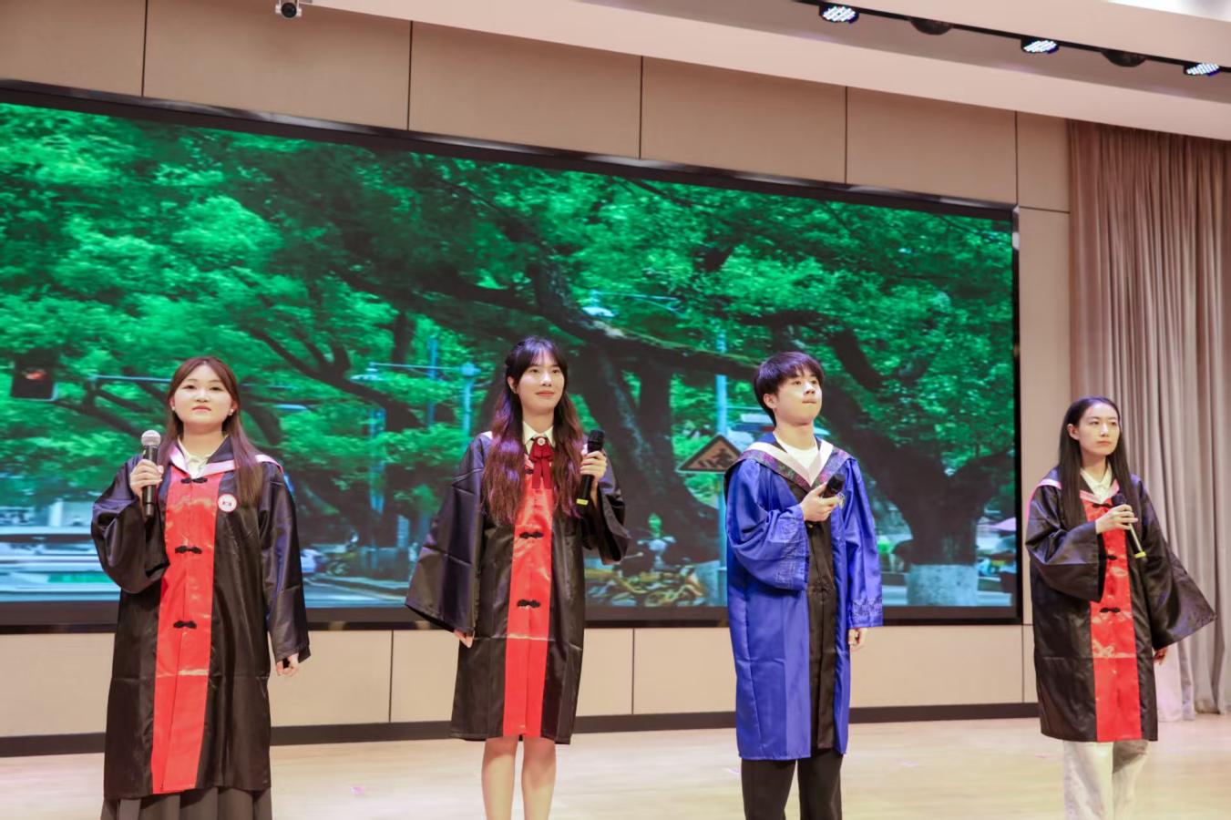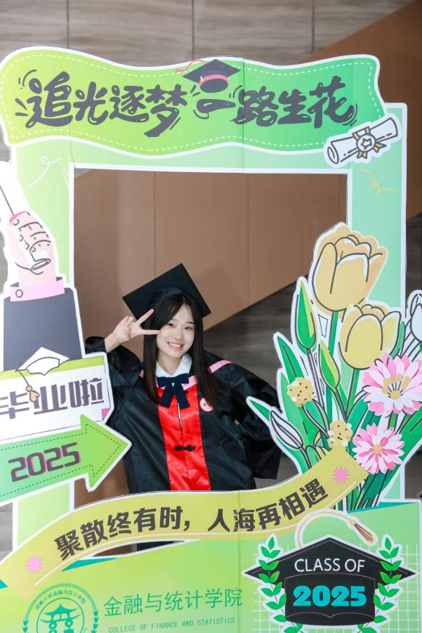 2025届毕业本科生代表陈婉蓉、毕业研究生代表的张人中依次发言,回顾、怀念湖大金统的青春岁月,感恩金融黄埔的悉心培养和热心帮助,希望大家在新的赛道上继续拼搏奋斗。