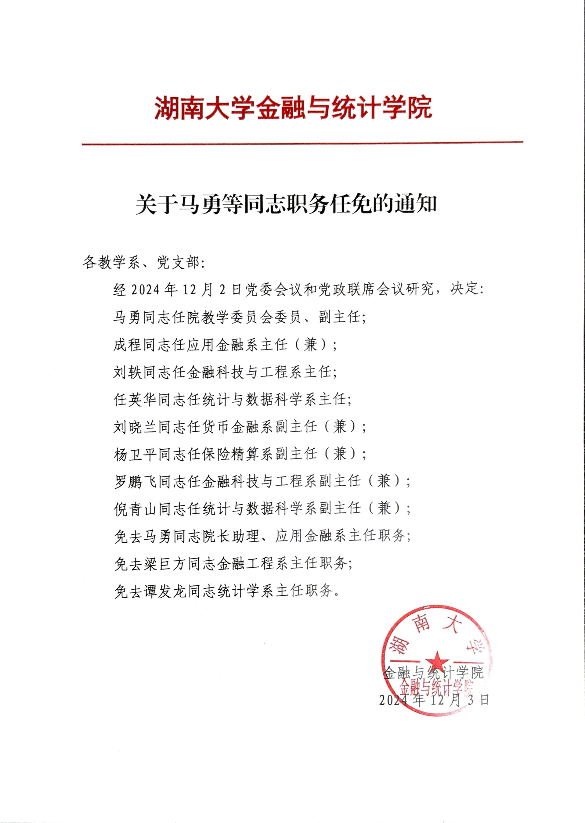 关于马勇等同志职务任免的通知