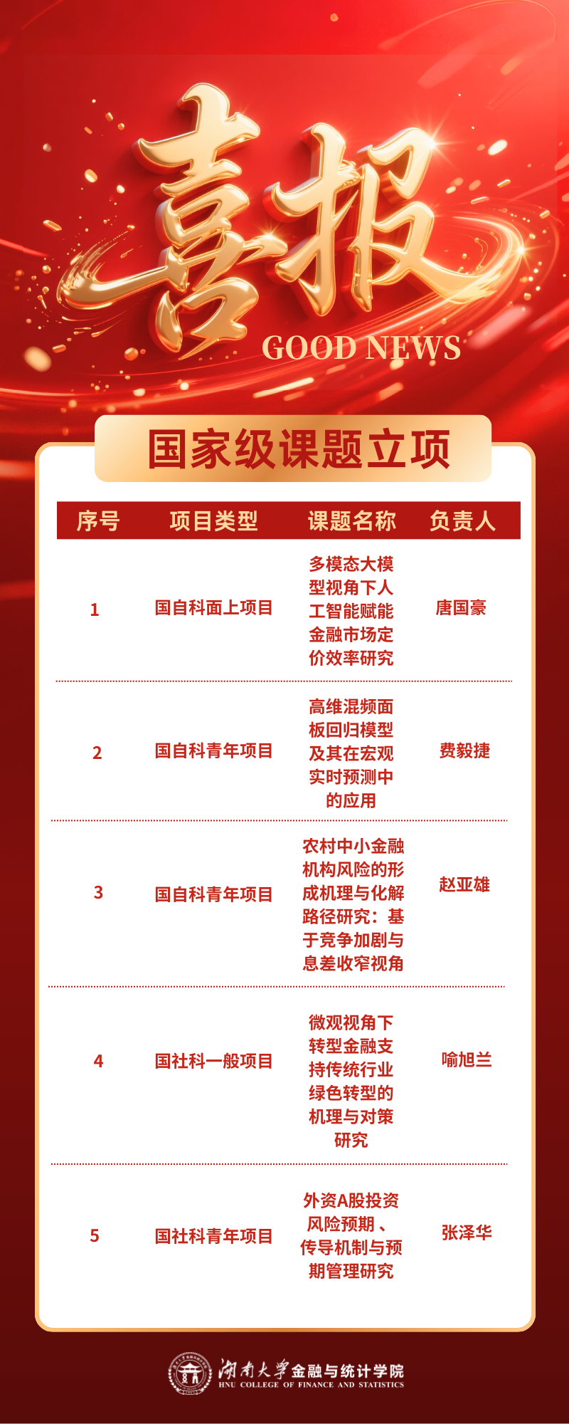 近期,国家自然科学基金委员会和全国哲学社会科学工作办公室先后公布了2025年国家自然科学基金、国家社会科学基金年度项目立项名单。日韩av 共有5个项目成功获得国家自然科学基金和国家社会科学基金立项资助。谨在此向我院5名老师表示祝贺!