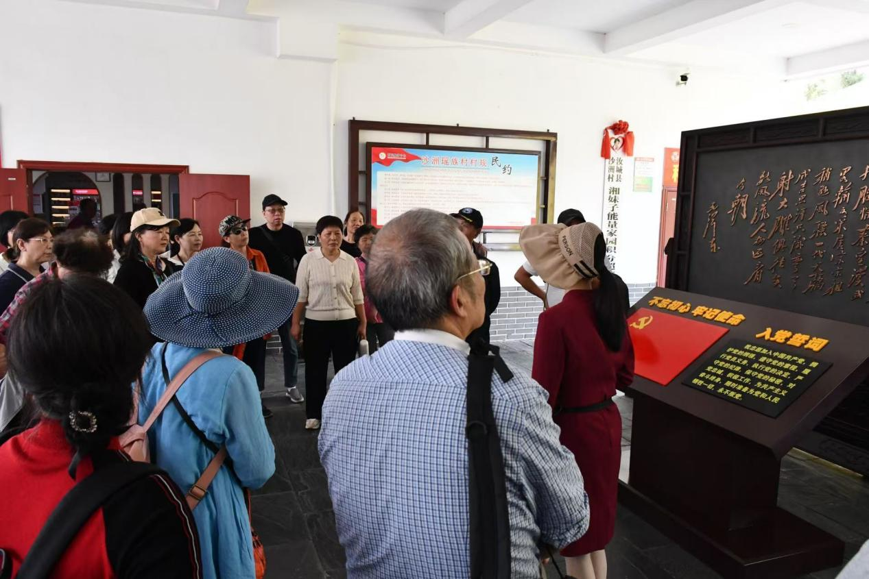 参观“半条被子” 相关旧址后,党员们又参观了中国传统瑶寨村落沙州村,与村民交谈了解当地风俗人情及建国 75 年来尤其是脱贫攻坚战的巨大变化。该村曾获湖南省美丽乡村示范村、全国民主法治示范村等称号,通过发展红色旅游产业和特色农产品生产逐步摆脱贫困。