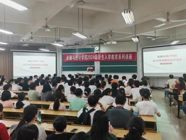9 月 18 日晚,我院 2024 级新生入学教育系列讲座之海外交流项目宣讲会顺利举行。200 余名本科新生参与,校国际合作与交流处副处长罗卓娃老师、院保险精算系副主任毕达宁老师主讲,助力新生拓宽国际视野。