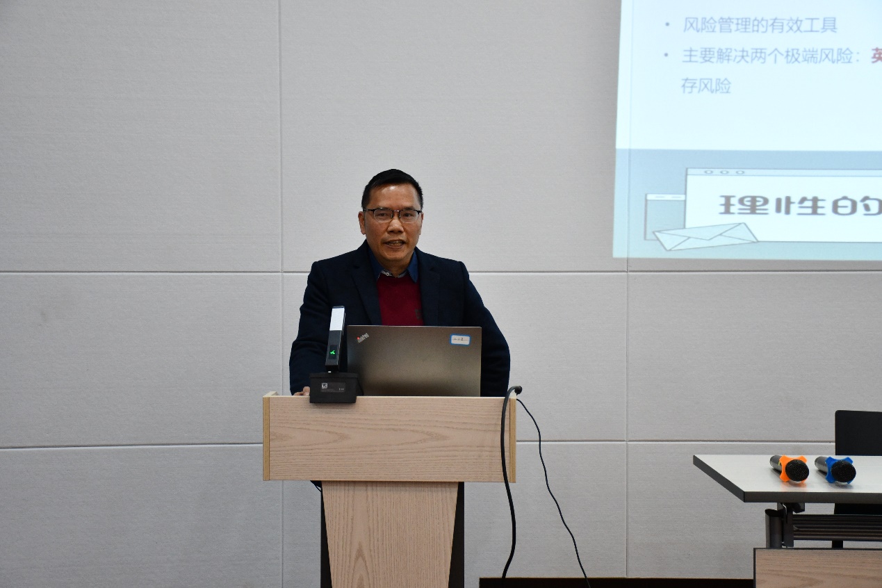 邓庆彪副教授以《保险学原理课程思政探索与实践》为主题,介绍了课程本质、课程思政教师思政能力的培养、课程思政实践元素,通过运用行业大赛、教育部产学研协同育人项目、省教改项目、省创新创业教育基础项目将课堂教学延伸到实践教学,将教学教革与课程思政整合,强调了课程理论和课程实践应相契合。未来也将建立课程思政案例库、保险职业相关数字视频资源库等,为申报省级、国家级课程思政示范课程打下坚实基础。