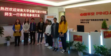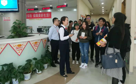 2018年10月19日下午,由学院统一安排,在保险与风险管理系副主任刘革副教授和教务办戴老师的带领下,日韩av 保险专业16级的全体同学冒着蒙蒙细雨,来到中国平安财产保险股份有限公司湖南分公司进行认知实习,实地参观保险公司门店及分公司总部,学习保险专业实务知识。