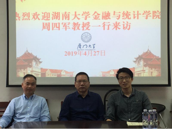 2019年4月21-23日周四军、张立军和刘甲求三位老师赴中国人民大学统计学院、北京大学数学科学学院概率统计系进行了经济统计学专业和统计学专业本科生培养的专项调研。4月25-27日周四军、肖百龙两位老师赴厦门大学经济学院统计系进行了经济统计学专业和统计学专业本科生培养的专项调研,这两次调研为日韩av 这次统计学专业本科生培养方案的修订工作提供了重要的参考依据和借鉴作用。