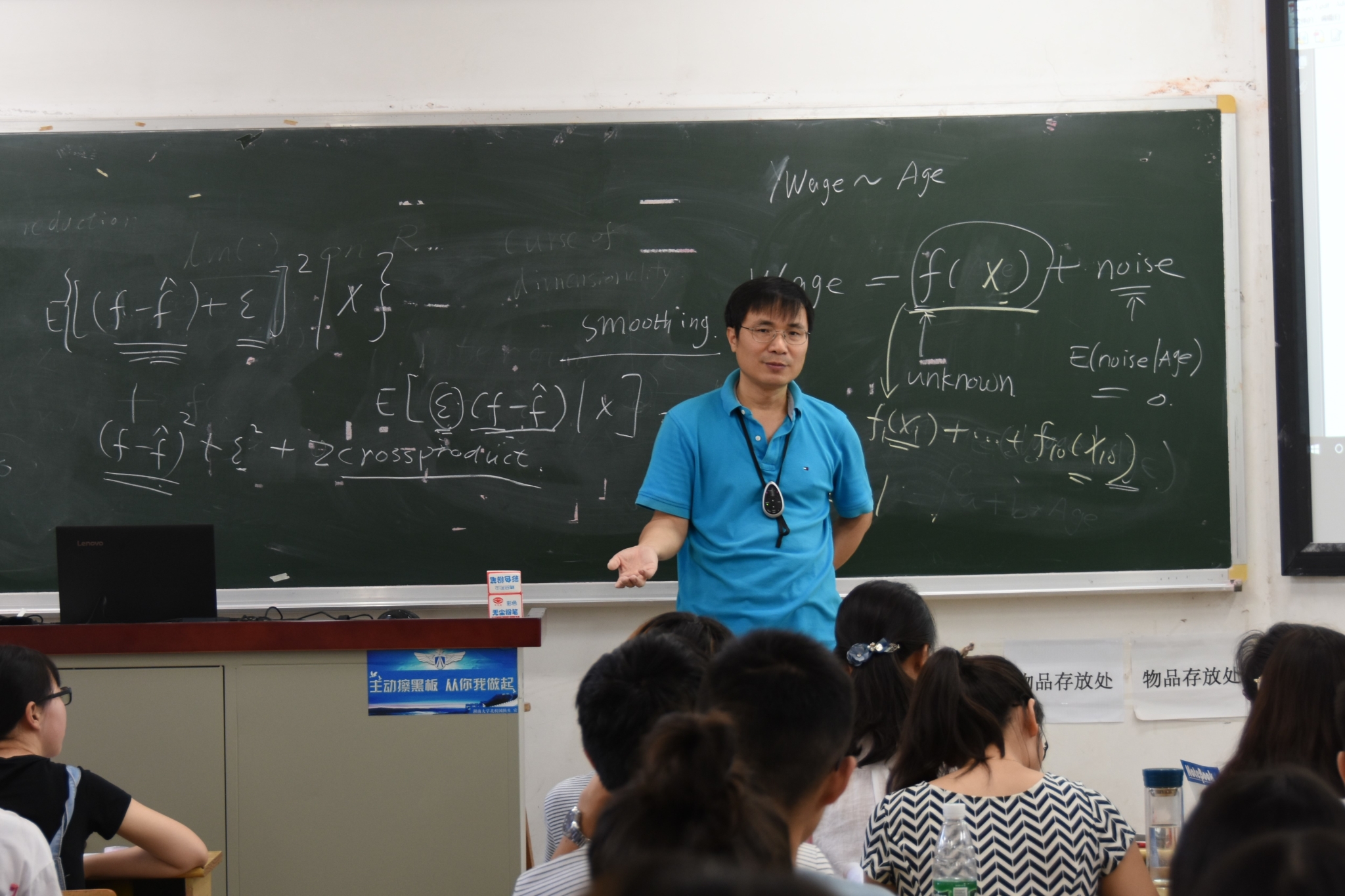 9月3日上午8:00,盛世景金融教育基金-特聘教授、来自美国北卡罗莱纳大学夏洛特分校统计学系的蒋建成老师,来到日韩av ,为本科生讲授暑期海外名师全英文课程——《统计学习理论》。