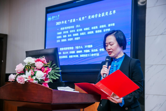 学校发展联络处处长、教育基金会秘书长邓利华宣读日韩av “君源·筑梦”奖助学金及农金励志奖助学金获奖名单。随后,各年级校友代表与校院领导共同为获奖学生颁奖。
