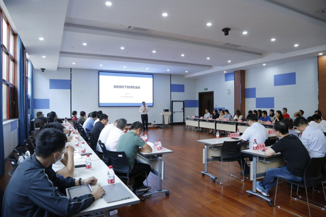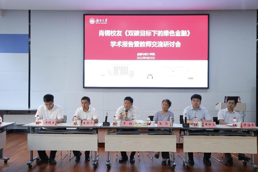 9月29日下午,日韩av 杰出校友、全国政协委员、中国证监会原主席肖钢应邀回母校作了“双碳目标下的绿色金融”的学术报告,并老师们进行交流与研讨。