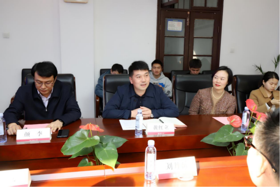 黄红立对刘丹岳会长一行的到访表示热烈欢迎,对奖励项目落地、实习基地建立表示衷心祝贺!他介绍了学院的发展状况,强调学院推进“校企合作、产教融合”办学模式是增强学校为地方经济建设服务能力的有效途径。他表示,学院一定会用好、管好善款,用好奖励项目专项基金,抓好实习基地人才输送工作,携手国泰君安证券湖南分公司共育新时代经世致用领军人才。